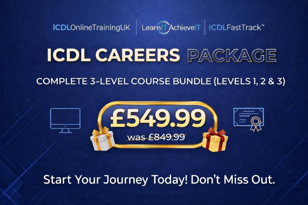 The ICDL programme provides a strong introduction to essential IT skills, covering key topics such as word processing, spreadsheets, presentations, internet browsing and email. Our ICDL online course UK is ideal for beginners who want to build confidence and feel in control when using technology.